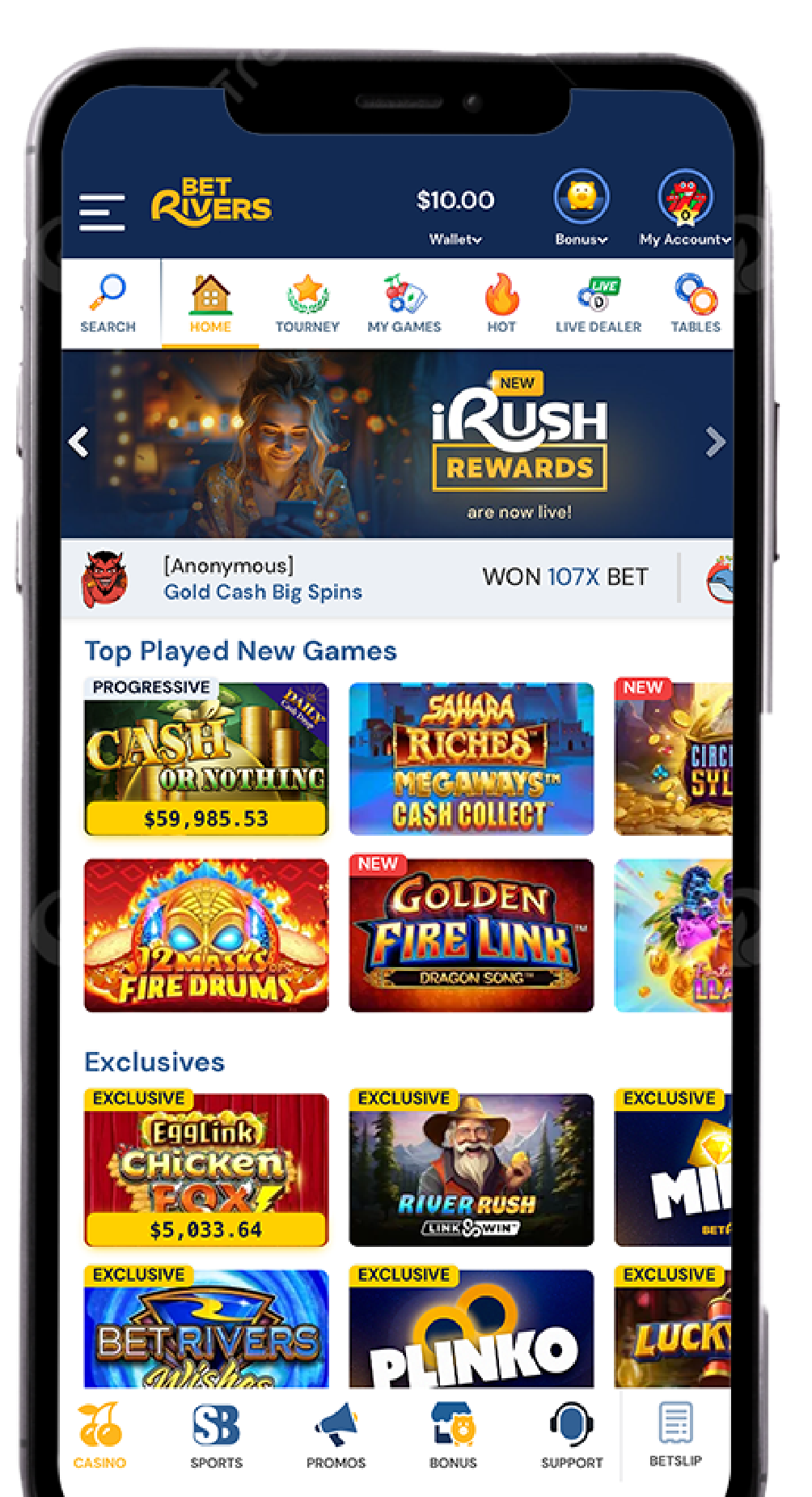 It’s all just a download away with the BetRivers Casino & Sportsbook app. Join today and experience one of the best gaming apps in North America, operated by Rush Street Interactive. With best-in-class casino games & real slots, BetRivers Online Casino offers more ways for players to win, including awarding free play through a wide range of fun bonus features built exclusively for you.
